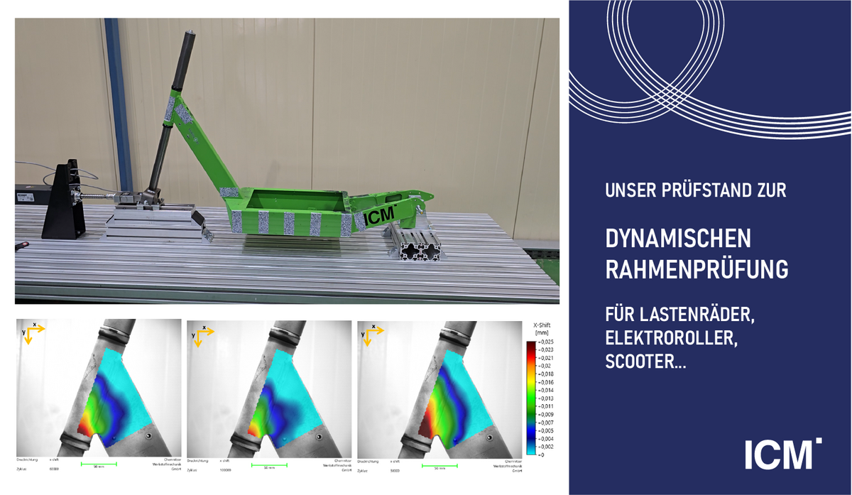 Zur Validierung des Prüfstands kam der ICM-entwickelte innvelo® Lastenroller zum Einsatz. Der Rahmen absolvierte die normgerechten Prüfläufe mit Bravour – und die Ergebnisse sind nun mess- und nachweisbar dokumentiert.